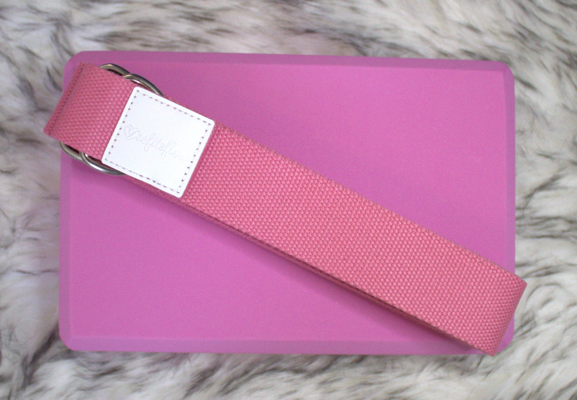 Two Engraved Yoga Blocks and Yoga Strap Bundle (Pink)